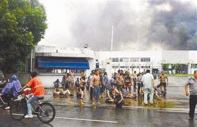 2014年8月2日,江苏省苏州市,昆山工厂发生惨烈爆炸,多人受伤,在等待救助。 建华摄/CFP