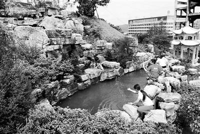 8月25日,浙江博来工具有限公司的员工,工间休息时在厂区公园假山和鱼池边观鱼嬉戏。