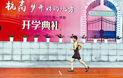 9月1日,浙江省杭州市,杭州市民在杭州高级中学的体育场里进行跑步锻炼。当日,杭州251所有条件开放的中小学室外体育场地设施免费向社会开放,让人们参加体育锻炼有了新去处。杭州中小学体育场地设施向社会开放将以市民卡为载体,对进入校园健身的市民进行身份识别和管理。无市民卡的居民可凭所在居住地一年以上居住证、身份证(军官证)等有效证件进行预登记并开通杭州通卡。