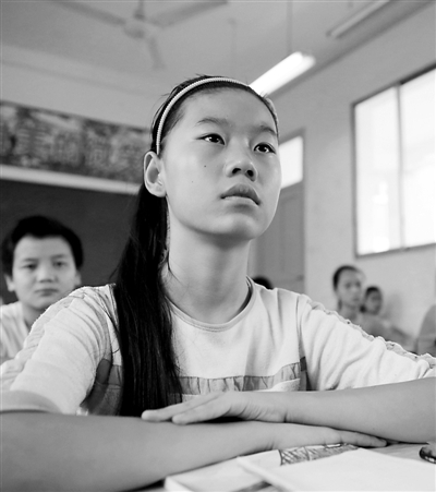 9月2日,刚转入四川省华蓥市工业新城铜堡农民工子弟学校读书的王玉珍,在课堂上认真听讲。本报记者 高柱 本报通讯员 邱海鹰 周松林 摄
