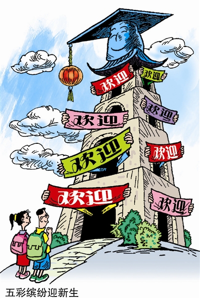 今年的大学迎新,各大高校都挂出了给力的标语,有励志版的“天行健,学长以实力打倒高富帅;地势坤,学姐凭智慧战胜白富美”,也不乏“学妹,快到我们碗里来!”这样的简单直接版。其中,吉林大学广播站贴出了迎新标语“小妖精们,你们终于来了!”引来不少争议之声。(9月2日《中国青年报》)