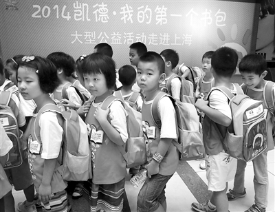 当日,主题为“我的第一个书包”公益慈善活动在上海举行,上海市一些外来务工者的小学一年级孩子在活动现场领到书包。据悉,由凯德集团发起的该项公益活动,今年已向全国贫困乡村200所学校约1.6万名一年级新生发放了新书包和学习用品。 新华社记者 陈飞 摄