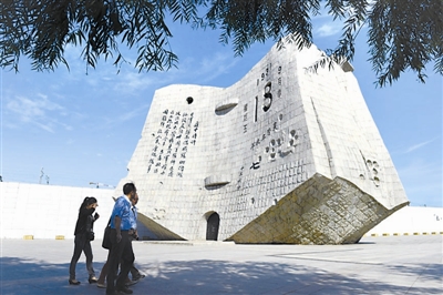 参观者从“九一八”历史博物馆的残历碑前经过(9月12日摄)。今年是中日甲午战争120周年,也是“九一八事变”爆发83周年。 新华社记者 李钢 摄
