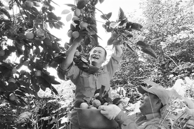 9月4日,中石化河南油田采油一厂生产准备大队电泵站内,硕大的柿子已挂满枝头,电泵班职工正忙着收摘柿子,丰收的喜悦溢于言表。该厂紧紧围绕“碧水蓝天”环保行动,开展绿色基层队(站)达标创建活动,在实现原油稳产增产的同时,建设独具魅力的偏远班站。(张明海 摄影报道)
