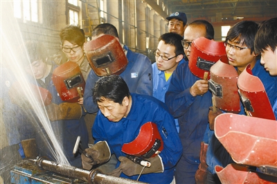 内蒙古一机集团国家级技能大师工作室带头人卢仁峰进行技能绝活现场演示
