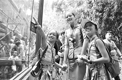 日前,33名来自云南腾冲的傈僳族孩子在首都空港贵宾公司志愿者的陪同下,参观北京海洋馆。