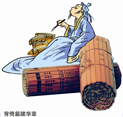 《坐拥文萃典籍》、《背倚篇牍华章》、《中华文化长河》三幅配图绘制:李法明