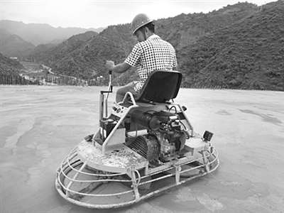 中铁十一局四公司三淅项目部通过运用新技术、新工艺和新设备把一线工人从繁重的体力劳动中解放出来,工程质量更是上了一个大台阶。同时,一些劳务工人由此也成了机械化作业的行家里手。图为桥梁队劳务工人在驾驶抹光机对挑子沟大桥混凝土路面进行抹平作业。本报特约通讯员 郑传海 摄