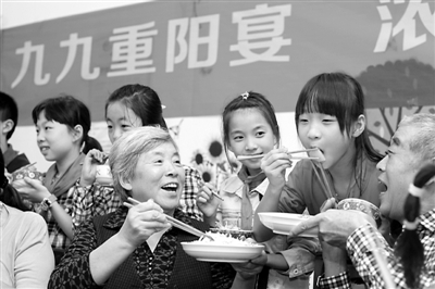 9月23日,社区老人和孩子们一起共品“重阳宴”。