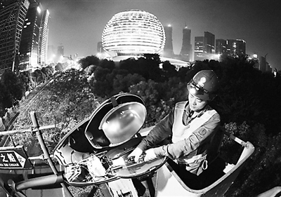 “十一”将至,为保证居民国庆节用电安全,国网杭州供电公司路灯管理人员为城区的路灯和景观灯展开了集中的“健康体检”。在西湖岸边的路灯下,几个身穿蓝色工作服,头戴安全帽的电力工作人员,却无暇欣赏美景,忙碌地进行路灯检修工作。(陈东)