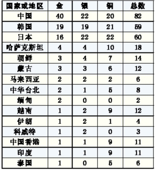 仁川亚运会奖牌榜