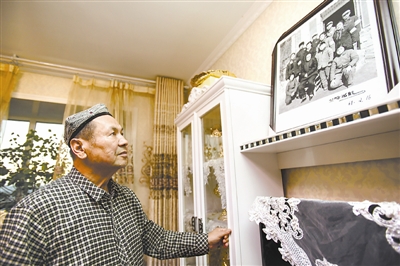 阿布列林46年前与焦裕禄家人的合影,被他摆在家里显眼的位置。 新华社记者 吴壮 摄