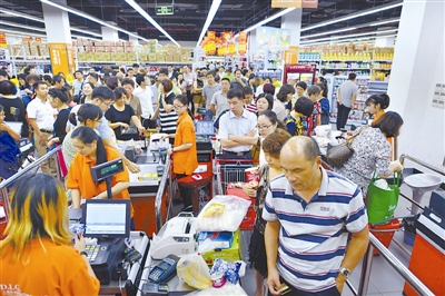 9月25日,上海自贸区内的外高桥进口商品直销中心销售持续火爆,不少市民在国庆节前赶来购物。左颂星 摄