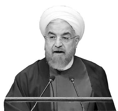 以上分别为奥巴马(左)、安倍晋三(下)和鲁哈尼(右)参加联大会议时的图片。