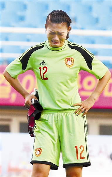 中国队守门员王飞在比赛后伤心落泪。 新华社记者 金林鹏 摄