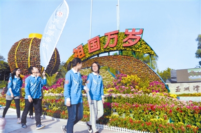 9月27日,志愿者在北京玉渊潭公园接受岗前培训。当日,北京国庆65周年游园活动举行志愿者誓师动员大会,并开始进行岗前培训。“十一”当天,北京市将在天坛公园、陶然亭公园、朝阳公园、玉渊潭公园、园博园等5家公园举行国庆游园活动,届时将有1600余名志愿者为游客提供志愿服务。新华社发