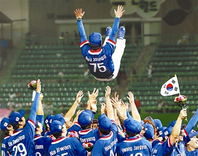 韩国队毫无悬念地夺得亚运会棒球比赛金牌。CFP供图