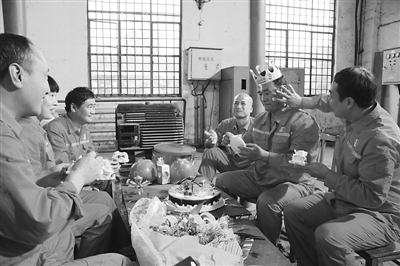 “这是我参加工作以来,第20次在岗位上度过国庆节。”10月1日早上7点30分,中石化河南油田采油一厂生产准备大队电泵队队长姬国庆准时来到队里开始工作。下班后,工友们热热闹闹地给忙碌了一天的他过生日。