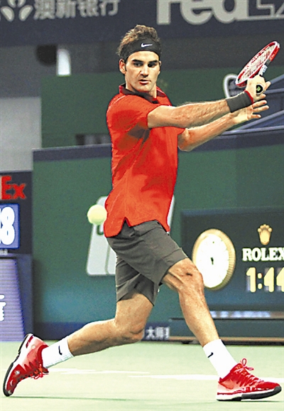 10月12日在上海大师赛男单决赛中,3号种子、瑞士球王费德勒经历两个抢七,以7比6(6)、7比6(2)击败法国名将西蒙,首次赢得该项赛事冠军。 CFP供图