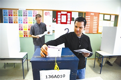 10月12日,在波黑首都萨拉热窝,一名选民在一处投票站投票。