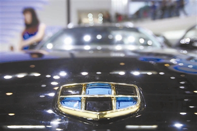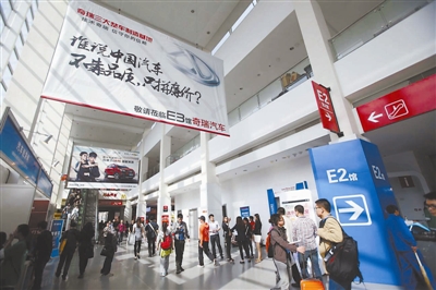 在2014北京车展上,奇瑞汽车的广告牌醒目。杨登峰 摄