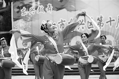 近年来,内江市东兴区乡镇自发成立农民腰鼓队30余支,该区每年都要举办一次鼓舞大赛,给农家女搭建展示形象、交流经验的平台。兰自涛/东方IC