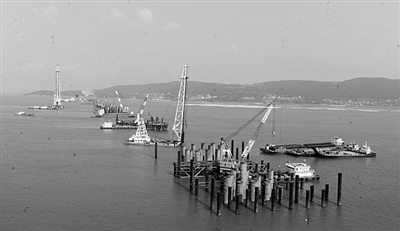 经过一年多紧张施工,中国铁建大桥工程局集团有限公司承建的我国首座铁路、公路合用的跨海特大桥——福(州)平(潭)铁路北东口水道特大桥攻克多项技术难题。目前,已上报科技开发立项12项,通过集团公司专家评审上报专利10项。