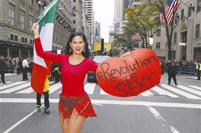 当地时间10月13日,美国纽约,人们在纽约曼哈顿第五大道参加哥伦布日大游行。