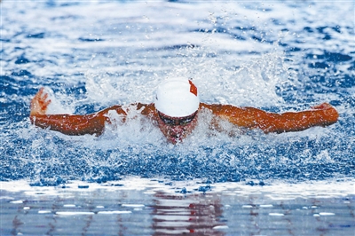 宁泽涛在全国游泳锦标赛上斩获50米蝶泳亚军。CFP供图