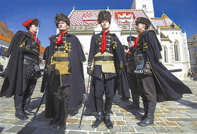 18日,来自克罗地亚“领带军团”的士兵系着传统领巾在首都萨格勒布圣马可广场参加“领带日”庆祝活动。17世纪中叶,在法国服役的克罗地亚士兵都系着一条鲜艳的领巾。领巾配饰被认为是现代领带的起源,克罗地亚也因此被称为“领带的故乡”。2008年,克罗地亚议会宣布,每年的10月18日为“领带日”。