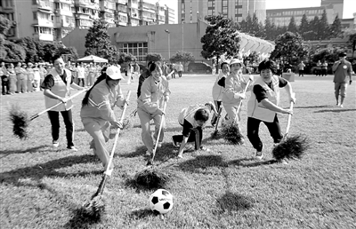 10月19日,杭州市举办了第三届环卫工人运动会,来自各个城区环卫部门的27支队伍参加了拔河、投篮、跑步等项目的比赛,其中扫把球、骑车捡物、翻轮胎等项目颇具环卫特色。比赛中,垃圾桶、扫把这些平日里与运动完全不搭界的环卫工具,全都派上了用场。东方IC /供图
