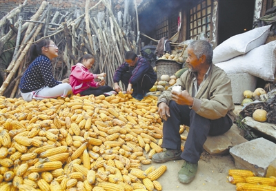 图为10月19日,北京延庆慈母川村,老人在屋外吃着孩子们热好的馒头,听着孩子们聊着外面的世界,也不搭话,脸上时而露出孩子般灿烂的微笑。彭子洋/CFP