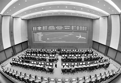 10月24日,在北京航天飞行控制中心飞控大厅,科技人员严阵以待迎接即将开始的再入试验飞行器第一次中途修正。当日16时29分,在北京航天飞行控制中心科技人员的精确控制下,再入返回飞行试验器成功实施地月转移轨道首次中途修正。新华社记者 田兆运 摄