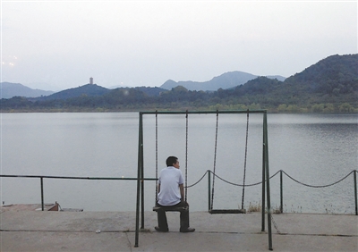 9月13日,在北京郊区游玩的老周一个人坐着发呆。