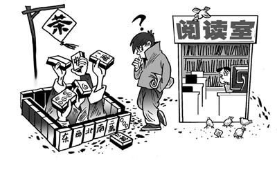 刘小姐的话在崇尚“码头文化”的重庆很具有代表性。根据该市近日完成的“学习型重庆”问卷调查显示,重庆人普遍缺乏读书的习惯,受访者中有40%的人回答:不打牌就没有事干。在厂矿企业职工中,超过半数的人回答平均每天只花了半小时读消遣性报刊。对不读书的理由,公务员称“公务缠身,没空读书。”有的人认为“读不读书,对工作和学习的实际影响不大。”