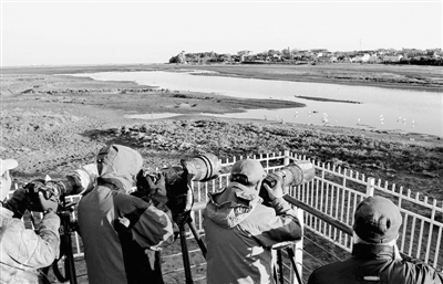 时下,随着大批迁徙候鸟飞抵北戴河沿海湿地,北戴河进入最佳观鸟期。监测显示,每年约有400多种、上千万只候鸟南北迁徙经过这里,还有种类数量可观的夏候鸟和留鸟在本地繁衍生息,鸟类资源丰富。图为观鸟爱好者在北戴河鸽子窝公园附近的湿地拍摄鸟类。新华社记者 杨世尧 摄