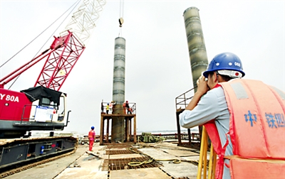 近日,由中铁四局二公司承建的、国内首条民间资本参股的轨道交通工程——温州市域轨道S1线一期工程进入实质性施工阶段。图为测量人员正在检测钢护筒下放的垂直度。李旭 洪克林 张方方 摄