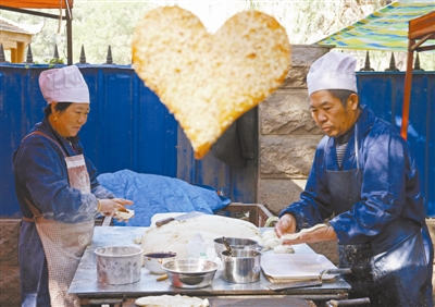 大爷一边做着烧饼一边讲:“做这种花样烧饼其实工序很多很复杂,只是为了不想让做正宗好烧饼的手艺消失才想到这个办法的。我们老两口也不图赚钱,就是习惯了做烧饼。”