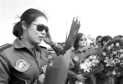 11月5日,广东珠海,中国空军八一飞行表演队的歼10战机编队抵达第十届珠海航展现场,其中4名歼击机女飞行员成为现场一道亮丽风景。航展期间,她们将驾驶歼10表演机进行飞行表演。 钟凡 摄/东方IC