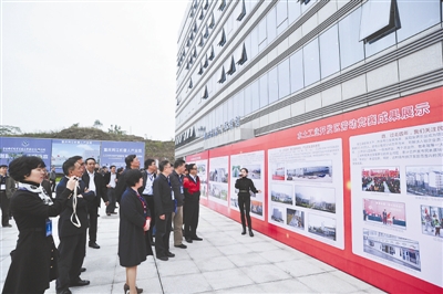 领导们集体参观劳动竞赛成果展板