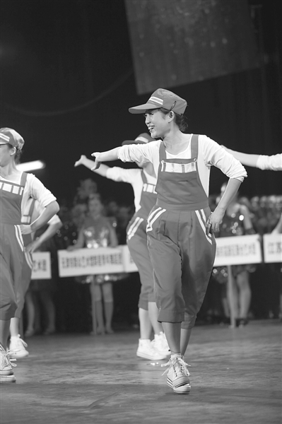 文中照片为来自全国各地的职工代表队在比赛中激情起舞。本报记者 李元浩 摄