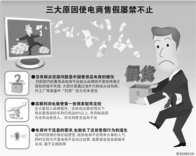 电商平台上的假货,多以奢侈品和国际大品牌产品为主。有分析人士认为,国际性的大品牌公司一般不喜欢对电商平台授权买卖自己的产品,因为电商通常把价格拉到非常低,这对于大品牌的线下专柜销售极为不利。上游货源困难,但奢侈品消费又利润丰厚,第三方厂商很容易就走向售卖假货的道路。