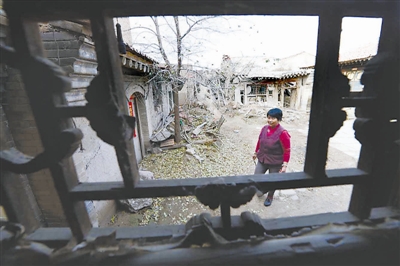 11月13日,腊铺村一名村民在一个年久失修的大院内行走。