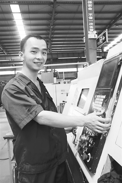“要还债”成了赵斌就业后拼命学习技术的重要动力。学车工,三个月就出师了。学磨床,也是三个月出师,车间领导又调他去学插床。“插床活少,收入就少,我晚上就偷偷去找师父学数车。”5个多月时间,他天天主动加班,累得瘦了10多公斤。轮休时,他就溜到数车师傅那儿帮他操作。“我的数车技术,是‘偷学’来的。”