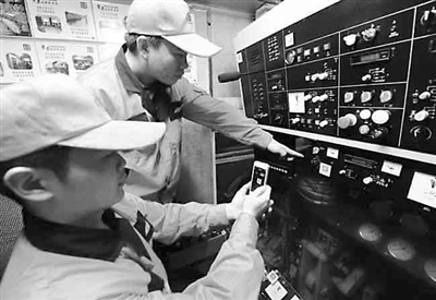 班组的年轻人利用“手机+网络”将捣稳联车的操作指南、设备调试、维护保养、应急处置等业务知识、技术要求做成二维码,贴在车上相应位置。操纵人员只需用手机扫一下二维码,就能快速、精准地获取相关信息,驾驭捣稳联机车变得娴熟自如。图为10月30日,鹰潭工务机械段W502班组的新工人们正在用手机扫描捣稳联机车操作台处的二维码。 胡国林 黄岳云 摄