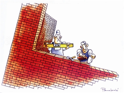 瞧,蹩脚的瓦工已将地基打歪、墙体砌偏,他们忽然想到用水准仪找找“平”。然,这一切只能是摆摆样子而已。