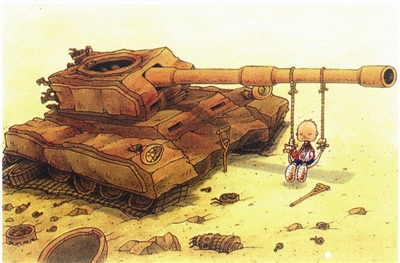 战争带给人们心灵的创伤难以消除,废墟上致残孩子的“游戏”更让读者心酸。“人类远离战火”,不能只是口头禅。