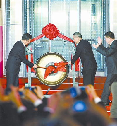 11月17日,上海与香港两地股票交易互联互通机制试点(沪港通)正式开通。这标志着作为资本市场重大制度创新的沪港通正式启动,沪港两地证券市场成功实现联通。当日,中国资本市场双向开放的首班车从沪港两地同时驶出,开通仪式及盘中表现受到全球瞩目。 张亨伟 摄/中新社