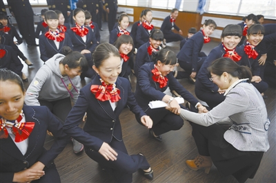 近日,内蒙古首个航空服务特色班在呼和浩特十八中开班,该班采取校企合办模式,文化课在学校正常学习,专业课由企业配备老师教学。 刘文华摄/中新社