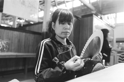 柴玲现在大部分时间都在中国扇博物馆里,一边做扇子,一边也算是表演。每天的工作量,在100把上下。她告诉记者,做这行是有苦有甜。苦的是每天坐在那8个小时聚精会神,腰酸背疼在所难免。有时候,做出来的东西有小瑕疵,也会严重打击到柴玲。她有些无奈地笑着说,自己对自己都很生气,怎么会做出那样的东西来。